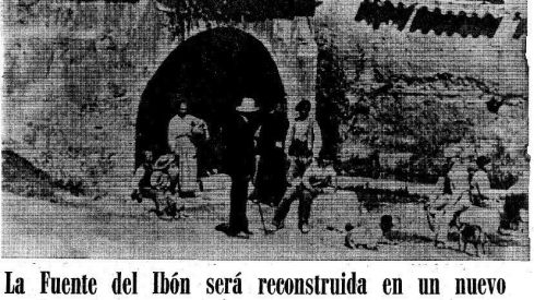 Cuando las sequías nos hacen plantearnos una nueva cultura del agua, cuando vemos que un hermoso capitel cambia la fisonomía del callejero, cuando vemos que faltan detalles que identifiquen y recuerden nuestra historia no sólo al visitante, sino a los mismos ciudadanos, pensamos en la vieja fuente quizá porque nos la recuerda felizmente una jota, pero aquella antigua fuente del Ibón demolida en la década de los cincuenta, en aras de una remodelación urbana quedó reducida a escombros en nombre del desarrollo de la ciudad, ya que Huesca crecía y en virtud del Plan Larrodera, y fue la fuente sepultada sobre la cual se trazó una calle. Cierto es que no faltaron las protestas de los ciudadanos que se negaban a que esta fuente que había abastecido a la ciudad durante siglos desapareciera a la vez que la Fuente del Ángel, ambas las más antiguas de la ciudad. Cierto es también que se salvó el escudo, aunque muy desgastado, que lucía sobre el frontal de su nicho, realizado en alabastro, consistente en dos genios o ángeles que sostenían una cartela que tenía el emblema antiguo de la ciudad, es decir, un lienzo de muralla, una puerta y dos torreones a cada lado de ella y encima una muesca sobre los caños que vertían el agua, llevándose a las dependencias municipales. Cierto es que años después se instaló una fuente con el mismo nombre en el parque, haciendo ver que era un acto de recuerdo, yo diría que en desagravio a la decisión adoptada, a la vez que era dado su nombre a una calle.