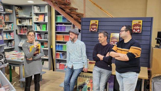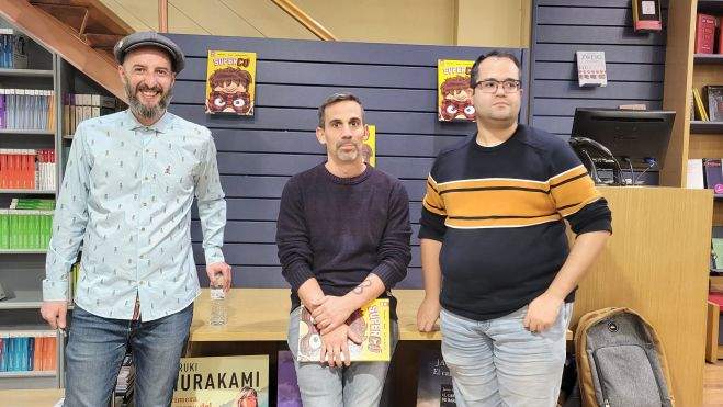 El humorista, que es el autor del guión, ha presentado este volumen en la librería oscense Másdelibros, que ha acogido este momento histórico con una sesión especial del Evento Cómic, presentada por Cristina Hombrados. También han acudido a la cita el dibujante Bernal, uno de los exponentes del humor gráfico de nuestro país, y el colorista Guillermo Montañés, igualmente uno de los mejores en su especialidad.