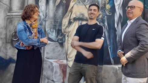 El Cuadro de "La Campana de Huesca" tiene desde ahora una réplica más, que se puede contemplar en la Plaza General Alsina y lleva la firma del artista de arte urbano oscense Edd Bhurton.