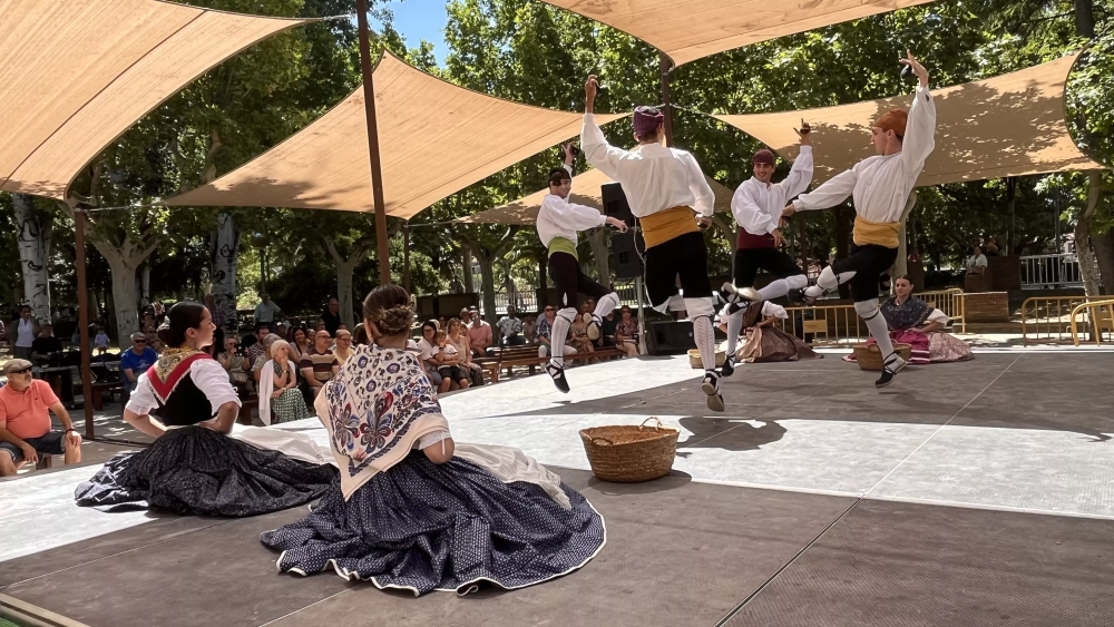 El Grupo Folklórico Elenco Aragonés ha protagonizado una jornada llena de jota en el parque Miguel Servet de Huesca y de una muestra de cómo se transmite el folclore a las nuevas generaciones para mantener la tradición.
