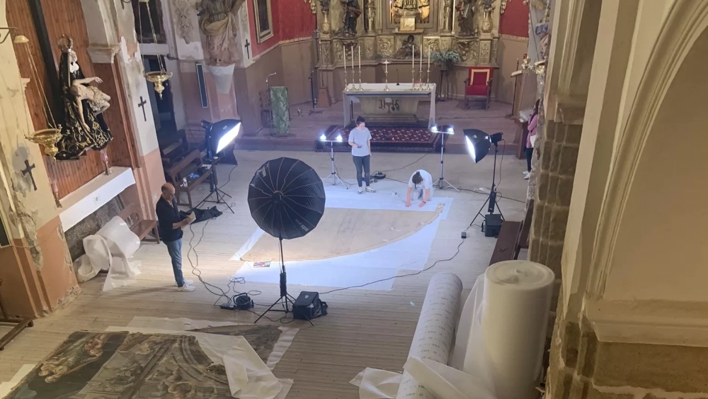 Durante este primer mes de trabajo, en septiembre, también se ha procedido a la extracción de varias muestras del tejido y los pigmentos para su análisis en un laboratorio especializado y a la realización de diversas pruebas de limpieza y de consolidación tanto del soporte como de las policromías.