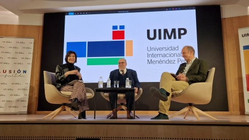 La conversación, conducida por la politóloga oscense Carmen Lumbierres, ha inaugurado el nuevo ciclo de debates impulsado por la sede Pirineos de la Universidad Internacional Menéndez Pelayo, que durante el mes de marzo reunirá en Huesca a analistas y expertos para reflexionar sobre los grandes desafíos políticos y territoriales del presente. Las sesiones se celebran cada miércoles en el salón de actos de la Fundación Ibercaja, con entrada libre previa inscripción. Antes del diálogo han intervenido el director del centro, Roberto Cerdán, y el profesor de la Universidad de Zaragoza Alfredo Serrate, responsable de la sede Pirineos de la UIMP.