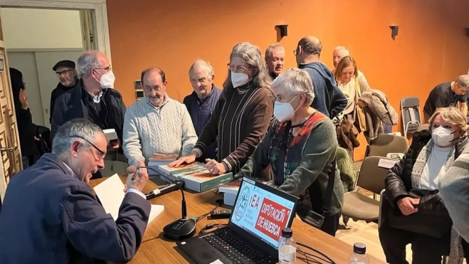 El acto, dentro del programa Biblioteca del IEA, reunió a numerosas personas, como sus compañeros de COU del 72, en una cita muy especial para Enrique Satué dentro de este pastoreo de su libro por la provincia, en la que estuvo acompañado por el secretario técnico del IEA, José Miguel Pesqué, y el director de Prames, Rafa Yuste.