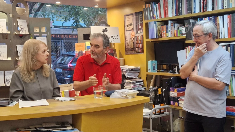 La escritora Luz Rodríguez acompañó al autor de Sangarrén en el acto de presentación de la librería Anónima, introducido por José María Aniés. Allí se fueron desgranando los pormenores de este libro, que está estructurado en tres partes, cada una con su propio enfoque temático.