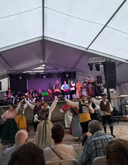 Uno de los platos fuertes de la jornada llegó con la actuación de la Agrupación Santa Cecilia, de Huesca. Con una puesta en escena vibrante, el grupo ofreció una muestra cuidada y variada del folclore aragonés, donde la música, el baile y la riqueza de la indumentaria tradicional se entrelazaron con maestría.