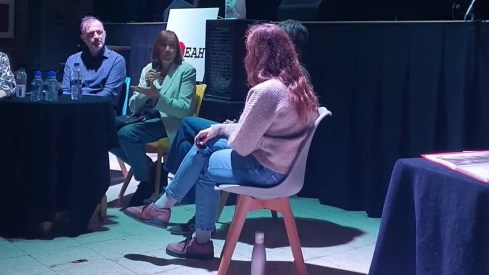 Chonín Laplana ha contado con el acompañamiento a las 10:30 horas de las profesoras Laura Cazo y Adela Moreno, artistas y docentes de la Escuela, en una mesa redonda moderada por Luisa Monerri, la primera de las acciones que el centro emprenderá para poner en valor la figura de pintoras altoaragonesas.