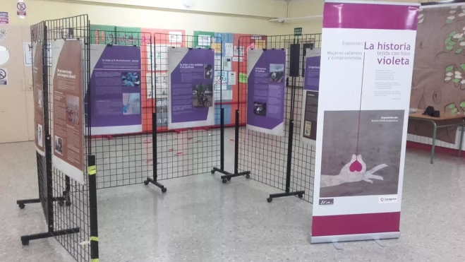 La historia tejida con hilos violeta es una exposición que invita a reflexionar sobre nuestra sociedad, nuestros valores y nuestras actitudes, así como a conocer las aportaciones a la historia de muchas mujeres que apenas conocemos. Es un espacio que muestra las dificultades que sufren las mujeres, su lucha, su capacidad para seguir adelante y sus logros. No pretende abarcar todos los ámbitos de la vida de las mujeres, simplemente poner el acento en algunos de ellos con la intención de motivar el pensamiento crítico sobre ellos.