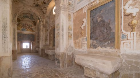 La Diputación Provincial de Huesca continúa recuperando el legado pictórico de Fray Manuel Bayeu en La Cartuja de las Fuentes. Hace poco más de un mes finalizaron los trabajos de restauración de las pinturas murales de la nave de la iglesia y este lunes comienzan los trabajos en la bóveda y paramentos de la tribuna del mismo templo. La semana pasada se realizó la instalación de los laboratorios y medios auxiliares.