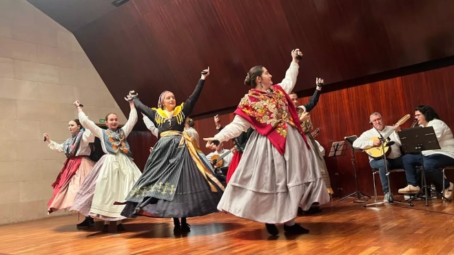 La Escuela de Folclore Aragonés Estirpe de Aragonia “Carlos Vidal” ha ofrecido una actuación en la que se ha combinado el canto con el baile, sin descuidar la indumentaria tradicional y con el ritmo de su estupenda rondalla.