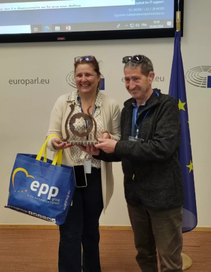 Este jueves, Rolegio Santolaria voló a Bruselas con su hijo, Jorge, para disfrutar del premio del concurso, que consiste en una estancia en la capital belga, con visitas organizadas a varios emplazamientos, entre otros el Parlamento Europeo.