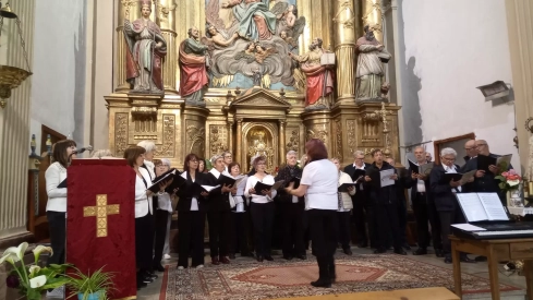 Este domingo, 19 de mayo, la iglesia parroquial de Biscarrués se llenó de melodías con el concierto "Música para la vida", a cargo del Coro Popular de la Universidad Ciudadana de Huesca. Esta actuación ha sido muy emotiva y ha calado profundamente entre los asistentes. Un repertorio de canciones populares aragonesas, gallegas, italianas y de estilos muy variados. En agradecimiento se les obsequió con un vermú a la puerta de la iglesia.