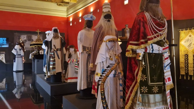 La exposición, en el Salón del Tanto Monta y otros espacios del Diocesano, muestra construcciones, diseños y ornamentos que sumaban esplendor a la celebración, así como a las manifestaciones más populares, como las procesiones.