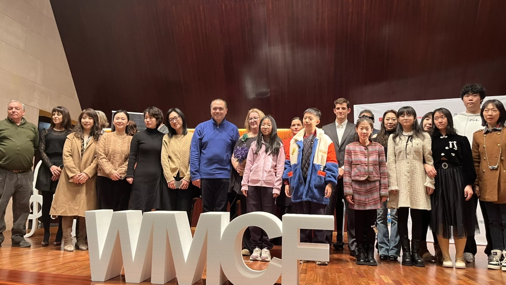 Entre los asistentes que abarrotaban el salón de actos de la Diputación Provincial de Huesca se encontraban los diez estudiantes chinos de piano, acompañados por el maestro Ernest So, que van a protagonizar esta tercera edición del del World Music Connecti-on Fesival.