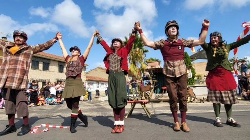 Así, la danza ha dado paso a un alegre pasacalles, donde se han desarrollado pequeñas escenas que han atrapado al público desde el primer momento. Los protagonistas, unos curiosos pilotos, no solo han arrancado carcajadas con sus ocurrencias, sino que también han invitado a los asistentes a unirse a la diversión. Las interacciones no se han limitado al humor: las acrobacias y los malabares de los artistas han dejado a más de uno boquiabierto, generando una mezcla de asombro y admiración.