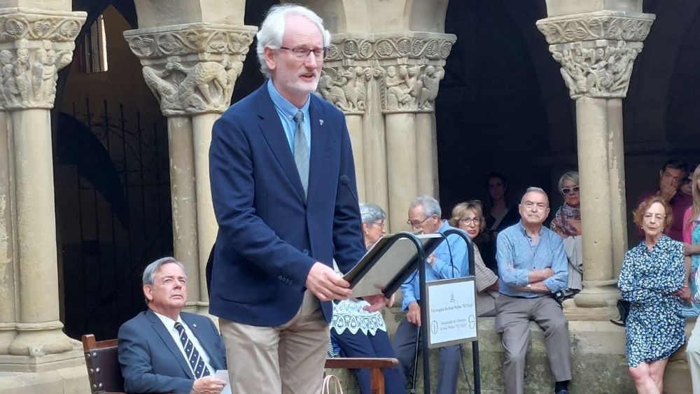 Por eso Carlos Laliena ha invitado a todos a "ver las cosas con una mayor profundidad. Pensemos por ejemplo en la noción de Aragón que acompaña esa idea general de los reyes que tan bien nos ha explicado don Eduardo Cuello. Estamos en una época en la que Aragón se estaba formando, en la que no podemos decir que Aragón existiera como tal, puesto que los reyes que están enterrados en este magnífico claustro eran reyes en Aragón, en Sobrarbe, en Ribagorza, en Pamplona... En muchos sitios y algunos que eran por los que estaban pasando en aquel momento. Eran regiones que se numeraban en los documentos cuando los reyes pasaban por ellos. Títulos que estaban con los derechos de mando, sobre las familias aristocráticas o linajes nobiliarios de grandes terratenientes que tenían a su mando siervos campesinos"