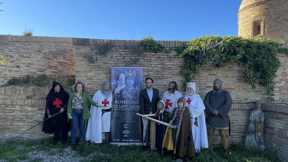 El alcalde ha estado acompañado en la presentación por la concejala de Turismo, además de por los encargados de dar vida a Jaime I, Mauro Manero; Ramón de Berenguer, Gabriel Mumbiela; y Guillem de Mont-rodón, José Manuel Baena, además de templarios y un representante de Héroes Legendarios.
