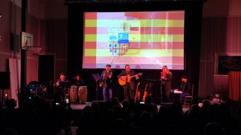 A su finalización, llegó el turno del grupo oscense De Nozotro, que interpretó algunas de las canciones más recordadas de Labordeta, a ritmos de rumba y flamenco en una actuación que transmitió energía positiva y alegría a los asistentes.