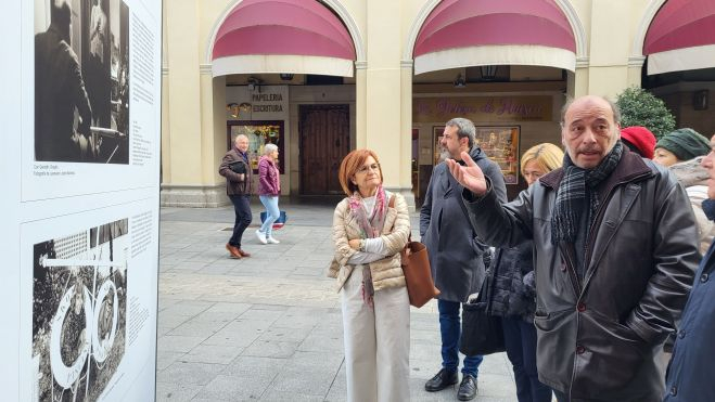 José Luis López Magerus ha asistido a la inauguración de la exposición en los Porches de Galicia, junto con Miguel Gracia, presidente de la Diputación Provincial de Huesca, Miguel Cordero, codirector de la Muestra de Cine de Ascaso, y Roberto Oltra, director del documental..