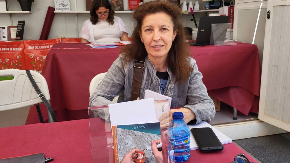 "Empecé a escribir porque había leído mogollón. Y dijo: voy a probar esto de escribir. En este momento, tengo como unos 460 premios literarios. Hay primeros, segundos, finalistas. Tengo publicada una novela infantil en Ecuador, que es Dragón Rojo. Tengo otra novela infantil con Ediciones de Salinas, que es Berto, el pensamiento y el resto. y sobre todo lo que hago es relato. El Instituto de Estudios Altoaragoneses me encargó hacer este libro de Letras de Año Nuevo y la verdad es que fue un reto porque normalmente no escribo relato tan largo. Y lo querían de humor que todavía lo complica un poco más". Es el origen de Del Revés, de Lourdes Aso Torralba, que ha firmado este domingo en la Feria del Libro de Huesca.
