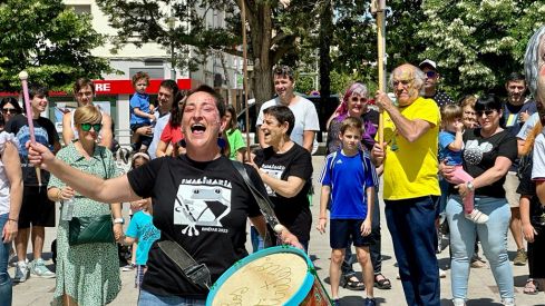 Una muestra del gran ambiente que se ha vivido esta semana en Binéfar se ha visto la mañana de este domingo con una plaza España repleta de niños, padres y abuelos jugando con la ingeniosa propuesta de los catalanes Peus de Porc, que ha sustituido las pantallas de las antiguas máquinas recreativas de los bares por guiñoles o en el pasacalles que ha recorrido el centro de la capital literana en el que han participado la Banda de Música Municipal, los cabezudos municipales, Los Titiriteros de Binéfar y sus dulzaineros. La música popular ha dado paso a otra más moderna, el rap de los madrileños Brócoli Duendes.