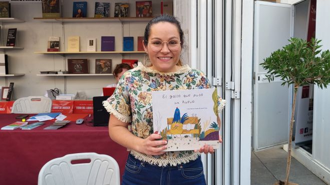 Indy García Acedo ha presentado en la Feria del Libro de Huesca “El gallo que puso un huevo”, su última obra, que ha sido ilustrada por Laura Tova. “Es un libro que trata la igualdad desde el punto de vista del hombre, de las nuevas masculinidades”, señala la autora infantil.