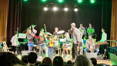 Hay cantera en Aragón y lo demuestra la big band de Jazz For Kids que se ha subido este domingo al escenario con 18 talentosos estudiantes de esta disciplina, entre ellos Gael Labella, que actuaba por primera vez en Binéfar bajo la batuta de Daniel Escolano. La formación acaba de cumplir su primera década de trayectoria y han recalado en Binéfar para ofrecer un concierto repleto de clásicos del jazz, el soul o el funky, así como del pop–rock más actual como ‘Cold duck time’, ‘On the sunny side of the street’, ‘Crazy Little thing called love’, del malogrado Freddie Mercury. Música para todos los públicos bajo el título ‘Las ventanas del jazz’ con el que han pretendido acercar el jazz, con arreglos, al público joven.