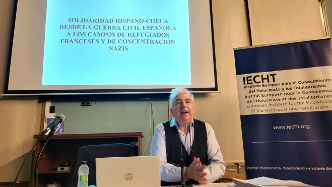 El profesor Jesús Inglada Atarés, director general del Instituto Europeo para el Conocimiento del Holocausto y los Totalitarismos, ha ofrecido una conferencia sobre "La solidaridad hispanocheca desde la Guerra Civil española a los campos de refugiados franceses y de concentración nazis", que parte del proyecto que desarrollan anualmente con el profesor Carlos Pérez y otros docentes para realizar viajes. Se trata de "Conocer el holocausto: historia, memoria, imágenes". Desde 2014, ya han pasado mil alumnos que han conocido la "terrible realidad de los campos" y se han entrevistado con supervivientes, "que se nos están acabando".