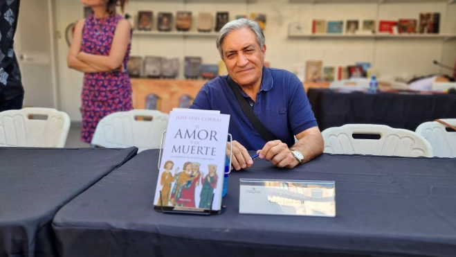 José Luis Corral ha acudido a la 53ª Feria del Libro de Huesca con dos libros que dialogan desde extremos distintos del tiempo: El amor y la muerte y Herodes el Grande, dos títulos que, como dos espejos enfrentados, proyectan desde distintas épocas la idea de la historia como novela y la novela como forma de pensar la historia.