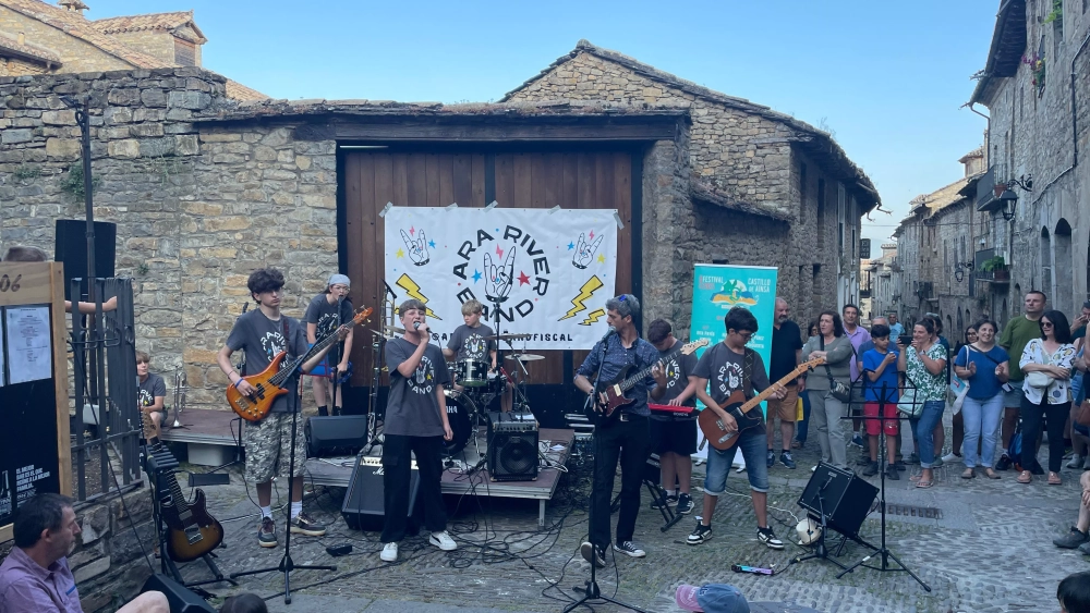 Las jóvenes promesas de la música sobrarbense han animado la fiesta presentación del Festival Castillo de Aínsa, en la Villa Medieval, a veinte días de su inauguración. Y es que en el encuentro, especialmente pensado para el público local y las empresas y colaboradores del longevo evento, han actuado alumnos de la Escuela de Música y Danza municipal José María Campo y la Ara River Band de Fiscal, poniendo el broche de oro a una cita donde terminaron de anunciarse algunos flecos pendientes de la programación.