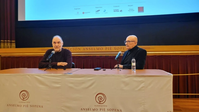 Dos personas "importantísimas" de la cultura de este país se han congregado en el Ciclo Economía y Cine en el Teatro Olimpia (organizado entre la Fundación Anselmo Pié y el Colegio de Economistas de Aragón), donde los asistentes a esta segunda sesión han podido disfrutar de la película 24 Hour Party People. Se trata de Luis Lles, en concepto de presentador, y Juan Arnau, el CEO de Florida 135 de Fraga, Monegros Desert Fetival y Elrow, además de autor del libro "Bailar en el desierto".