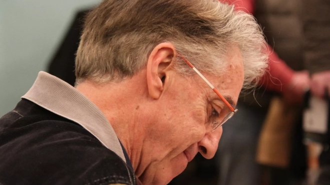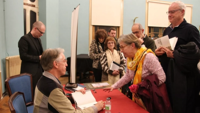 Julián Casanova, firmando ejemplares de "Franco" al término del acto. Foto Carlos Neofato