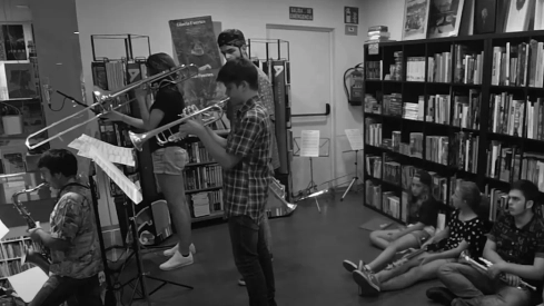 Asistimos este domingo a la interpretación del clásico de Duke Ellington It don't mean a thing por parte del Proyecto Jazz for Kids en la librería en 2017. Aparecen ahí Álvaro Ocón y Saúl Andreu (trompetas), Juan Salamero (saxo alto), Guillermo Gómez (saxo tenor), César del Val (saxo barítono), Izarbe García (trombón), Jara García (flauta), Marcos Alba (guitarra), Mikel Legasa (piano), Román Cubelos (contrabajo) y Julen Rodríguez (batería). Muchos de estos músicos, por cierto, vuelan ya en solitario y han aparecido en esta columna semanal con su proyectos ya profesionales.