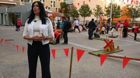 Tras recordar el preludio del pasacalles y el concierto en la Plaza Luis Allué, la regidora con parte de la corporación municipal ha estado presente en una de las instalaciones fijas, en la Plaza de San Antonio (donde la pasada edición estuvo el laberinto del Cuco), un minigolf en el que se han concentrado multitud de familias con los niños. "Mañana por la mañana se puede disfrutar con otra de las instalaciones más experiencial y sensorial en la Plaza de la Catedral".