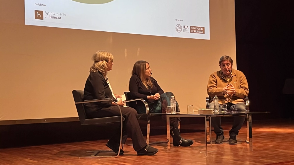 Alrededor de 200 personas asistieron este jueves a la tertulia protagonizada en Huesca por Luis García Montero y Aroa Moreno Durán, con la que se reanudó el programa Diálogo entre escritores que organiza el Instituto de Estudios Altoaragoneses y que tendrá continuidad el jueves, 9 de noviembre, con una sesión protagonizada por Paula Ortiz y Rodrigo Cortés, y culminará en Monzón una semana después, el día 16, con la participación de Espido Freire y Sergio del Molino.