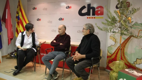 En la sede de CHA-Plana de Huesca, con aforo completo, se compartió una tarde de complicidades y confidencias en torno a la figura del gestor cultural Luis Lles, que recogió el premio a la Defensa de Derechos y Libertades de Aragón 2025 que concede CHA -Plana de Huesca, magníficamente acompañado con ocasión de la mesa debate por Verónica Villagrasa (secretaria territorial CHA AltoAragón) y por el artista multidisciplinar Kike Lera.