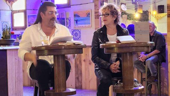 Miguel Ángel Beltrán es otro oscense de adopción, pero fato, fato. Sin renunciar a sus orígenes de Bujaraloz, y sobre todo consciente de que su sino es recorrer el mundo. En su cabina de camión, donde cada noche escribe. Al principio, terapéuticamente para vomitar sus demonios. Poco a poco, domeñando las iras y reconvirtiéndolas en alcobas de amor en verso. Hoy, ha pronunciado una hermosa llamada a su hija, un poema inédito titulado "¿Sabes?" Y, ¿sabes, amigo lector? Los aplausos han fluido, pero suavemente, con delicadeza, al tenor de los versos. Con una bebida con la que refrescar y acompañar la poesía. La belleza se ha enseñoreado de La Catalítica. Es un buen maridaje.