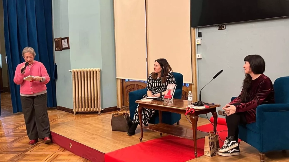 María José Galé Moyano (L’Hospitalet de Llobregat, 1975), residente en Zaragoza desde la infancia y autora del ensayo Mujeres barbudas. Cuerpos singulares, explicó que su llegada a la ficción ha sido un desplazamiento natural. Reconoció que “nadie llega sola a ninguna parte” y quiso comenzar agradeciendo a quienes la han acompañado en este tránsito y a las amigas del club de lectura, a la librería Anónima, a su amiga María Nogués y al público que llenaba el salón, un espacio cuya belleza confesó que le abrumaba hasta rozar “ese síndrome de Stendhal" que también tiene una de las protagonistas de la novela.