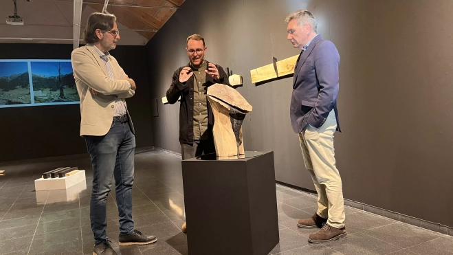 Molins ha estado acompañado en la apertura de la muestra por los concejales de Huesca Ricardo Oliván e Iván Rodríguez, quien ha reconocido la curiosidad que le ha despertado esta exposición, especialmente la idea de que el interior del árbol es lo que mejor nos transmite la esencia del territorio, y la potente referencia al tiempo que recoge el título.