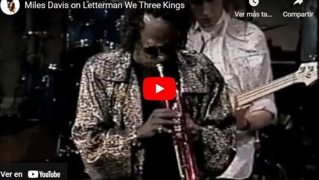 Para ello se rodeó habitualmente de músicos jóvenes y talentosos que se implicaran en esa búsqueda. El video de este domingo es un ejemplo de ese modo de trabajar y, a la vez, una de sus escasas contribuciones al jazz navideño, que debía importarle poco. Se trata de la aparición en diciembre de 1987 en un programa de televisión llamado Late Night with David Letterman al que lo acompañaron David Sanborn (saxo alto), Sid McGinnis (guitarra), Paul Shaffer (teclados), Will Lee (bajo eléctrico), Anton Fig (batería) y Marcus Miller, un bajista eléctrico treinta y pico años más joven, que estuvo con él desde 1981 hasta poco antes de su fallecimiento en 1991. Marcus Miller emplea un bajo sin trastes y revive esa escena habitual de los conciertos en los que Miles se paseaba deteniéndose junto al músico con el que quería dialogar.