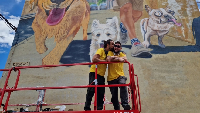 La reciente incorporación de murales al barrio del Perpetuo Socorro, junto a los ya existentes y otros que se han creado durante el desarrollo de la segunda edición del Barriofest, convierte esta zona de la ciudad en un potente espacio de arte urbano que la asociación de vecinos desea incorporar a las rutas culturales de la capital altoaragonesa.