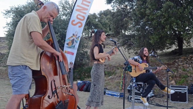 El Festival Sonidos en la Naturaleza ha puesto música en su fin de semana sobrarbense al fastuoso conjunto arquitectónico, defensivo y religioso de Muro de Roda, en el valle de la Fueva, con la cantante y versátil instrumentista de Ombligo, acompañada por el contrabajista Pablo Navarro y el guitarrista Gonzalo Navarro.