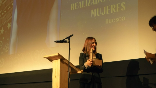 La Muestra de Cine Realizado por Mujeres de Huesca vivió uno de sus momentos más emotivos este viernes en el Teatro Olimpia, con la entrega del Premio Pan y Rosas a la cineasta aragonesa Paula Ortiz. En su vigésimo cuarta edición, la muestra, que el año pasado sorprendió al reunir a más de 2.500 personas en las proyecciones y atraer a más de 500 en los coloquios, sigue consolidándose como un espacio de referencia para visibilizar el cine hecho por mujeres. Este año, la Asociación Oscense Pan y Rosas, organizadora por primera vez del evento, reafirma su apuesta por crear un encuentro único entre las cineastas y el público oscense, un espacio donde las inquietudes y miradas femeninas se cruzan para ampliar nuestra comprensión del mundo.