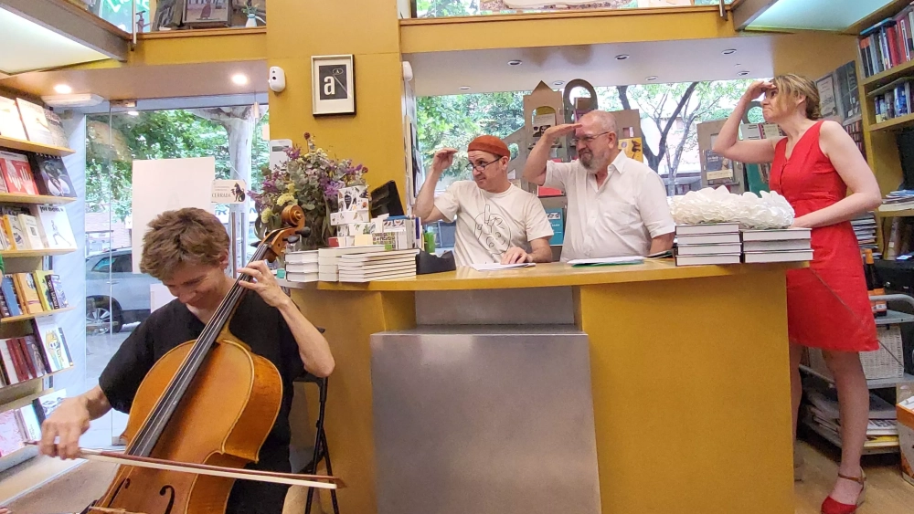 Chema Aniés, responsable de la librería Anónima, abiró el acto destacando la calidad de la edición de Prames, "y no hay nadie que lo pueda abreviar mejor que Pilar ni ilustrar mejor que Cano”, apuntó. Lo que siguió fue una presentación coral y divertida, con espacio para la música barroca.