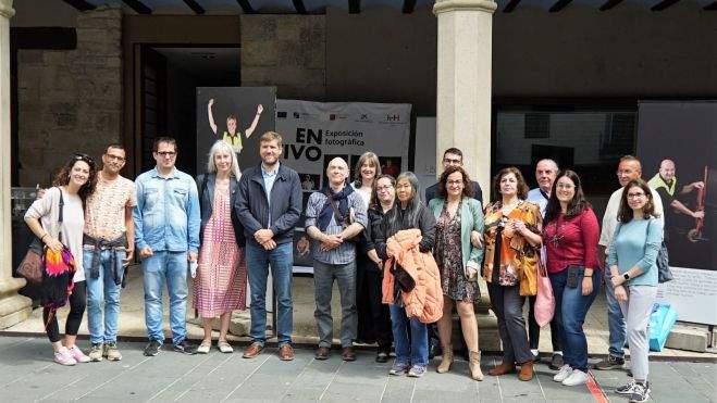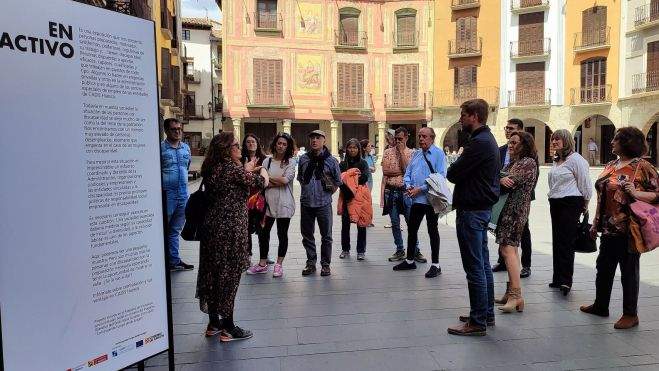 Tras sus intervenciones ha tenido lugar la visita guiada a la exposición, compuesta en esta ocasión por quince fotografías en gran formato distribuidas en diferentes puntos de la Plaza Mayor de Graus. Dirigida por Aroa Almazán, responsable del área de Empleo de Cadis Huesca, ha participado en ella también Maite Bermúdez, técnico del Programa Operativo de Inclusión Social Poises, gestionado por el Centro Guayente-El Remós.