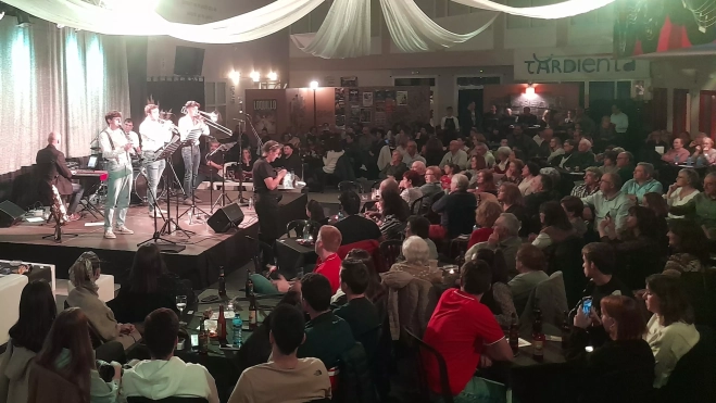 Después de las grandes actuaciones del sábado 18, con bandas tan veteranas como Jessica Abu y Red House Revival, había ganas en Tardienta de ver, el domingo 19, el debut del trompetista Víctor Alcubierre, el saxofonista y clarinetista Bruno Barrachina y el trombonista Juan M. Sirón, artistas formados en la Escuela de Música de la localidad y fogueados en la Banda de Guante Blanco.