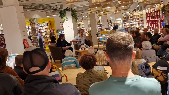 El acto de presentación de Un punto de destello se ha celebrado este jueves en la librería Santos Ochoa, donde un nutrido público ha acompañado al autor en un encuentro cercano y ameno. Durante el evento, Pecker ha compartido detalles del proceso creativo que ha dado forma a esta obra, revelando anécdotas personales y la inspiración que subyace en cada relato.