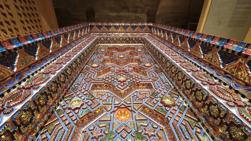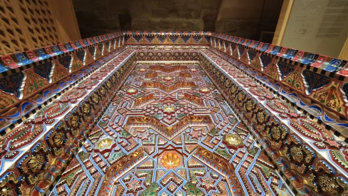 Recrear también el techo, formado por 12 alfarjes mudéjares, policromados y dorados, ha sido posible gracias a la tecnología que ha permitido las mediciones exactas de la sala con el escáner láser, y les ha dado la información de cómo era.
