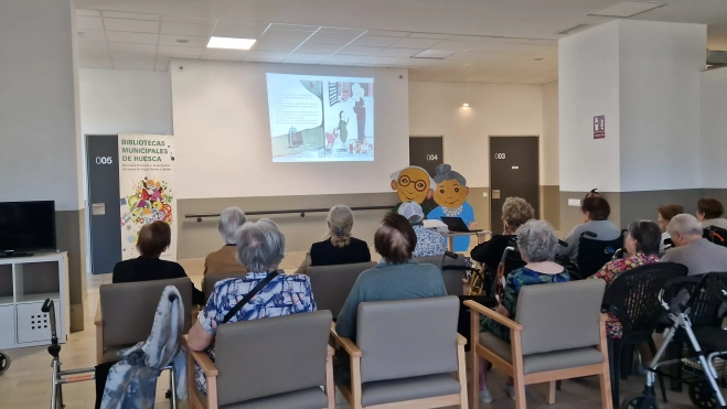 Los cuentos siguen presentes en las historias personales, en la memoria y en la vida de quienes los escucharon y contaron, por mucho tiempo que haya pasado. Así se ha puesto de manifiesto este lunes en la Rey Ardid de Huesca, donde sus residentes han recordado títulos, personajes y canciones durante la actividad organizada por las bibliotecas municipales con motivo del Día de los Abuelos y coordinada en esta ocasión por la Ramón J. Sender.