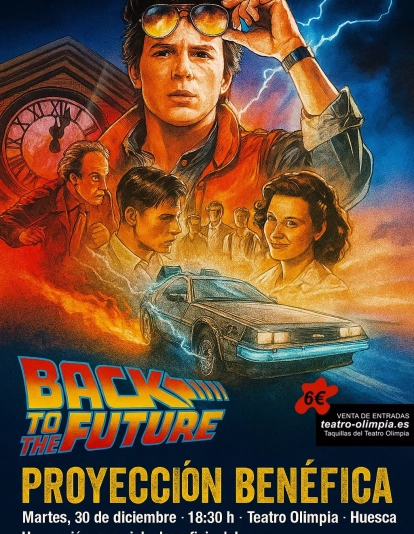 El Teatro Olimpia acogerá el próximo martes 30 de diciembre, a las 18:30 horas, una proyección especial de la película “Regreso al Futuro”, un clásico indiscutible del cine dirigido por Steven Spielberg. La sesión tendrá carácter benéfico y todos los beneficios íntegros se destinarán a la reconstrucción del espacio Corral de García, en Santa Eulalia de Gállego, dirigido por Jesús Arbués.