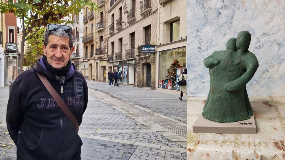 El certamen, vinculado este año al voluntariado y la sostenibilidad, ha servido como punto de partida para una idea que, como comenta el oscense, nace de escenas reconocibles. “Cuando ocurre una catástrofe, siempre hay personas anónimas dispuestas a ayudar. Ese abrazo es lo que quería transmitir”, señala.